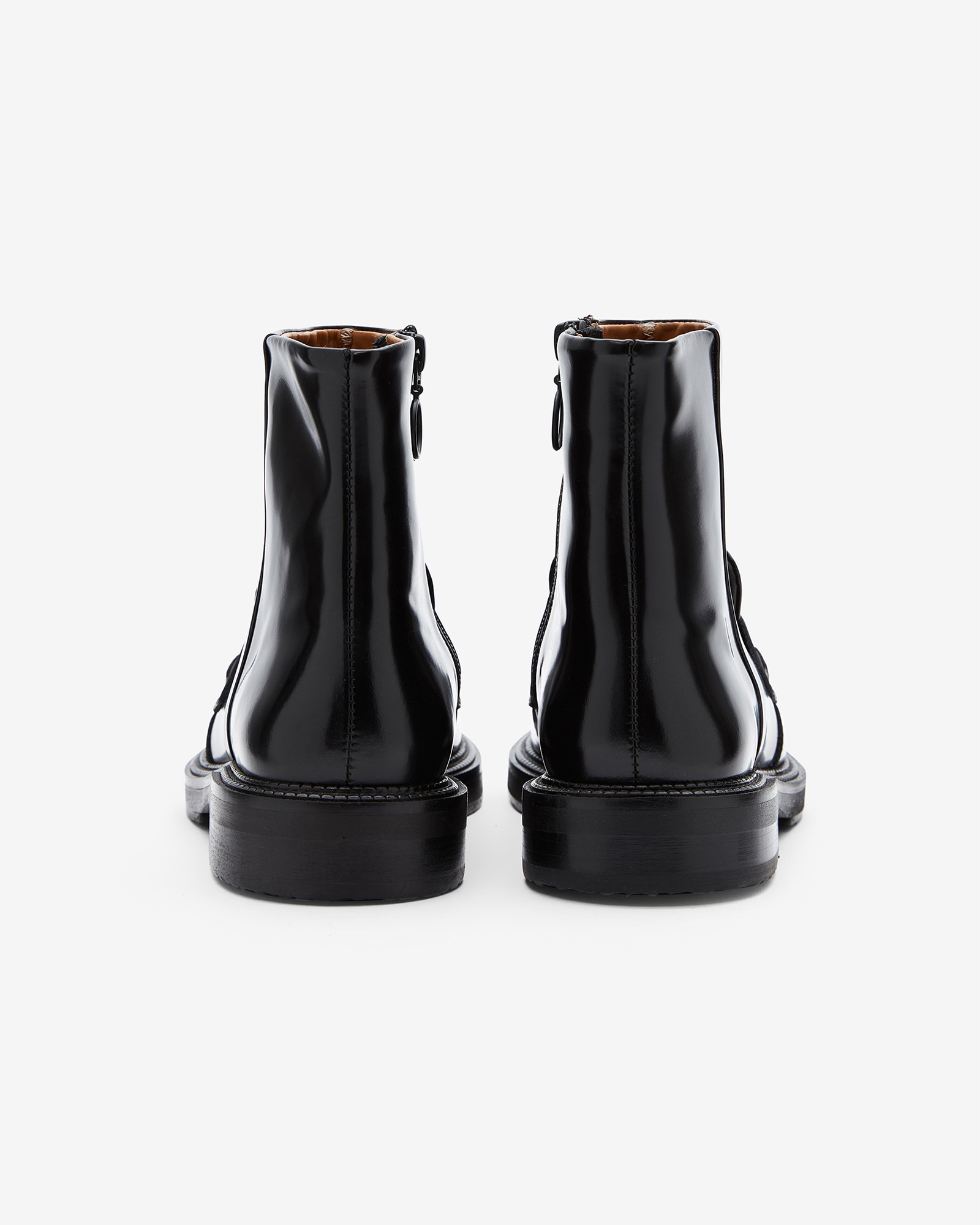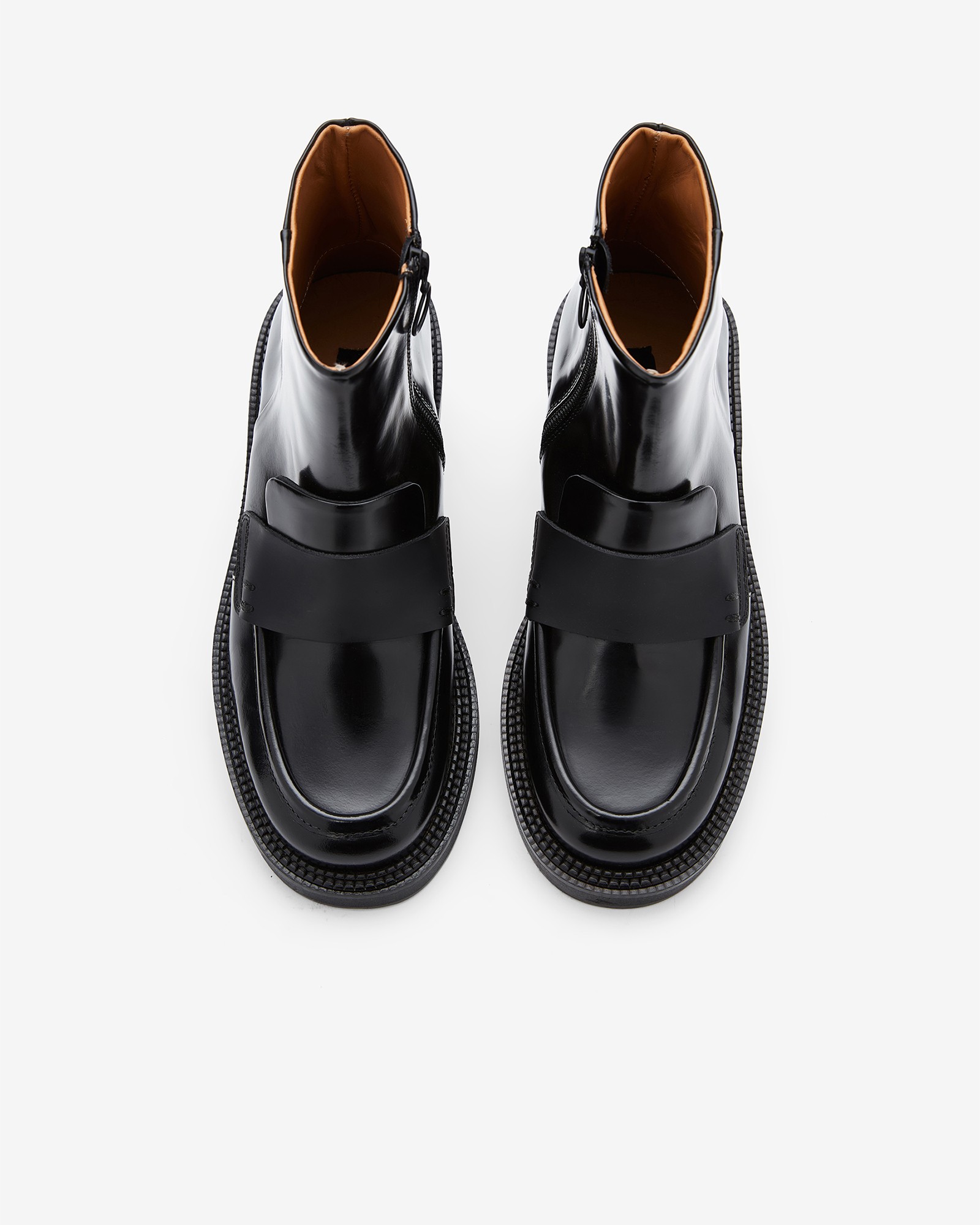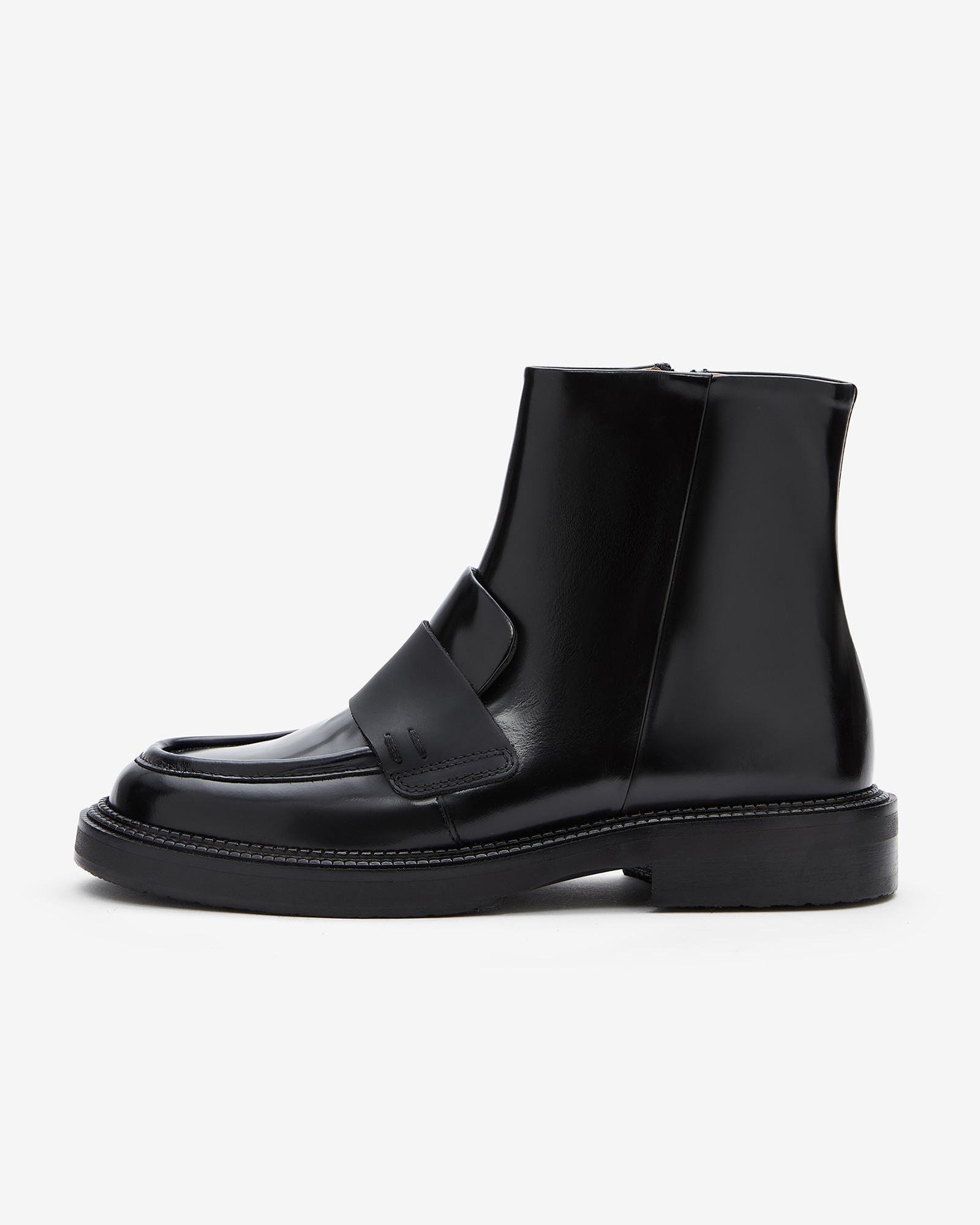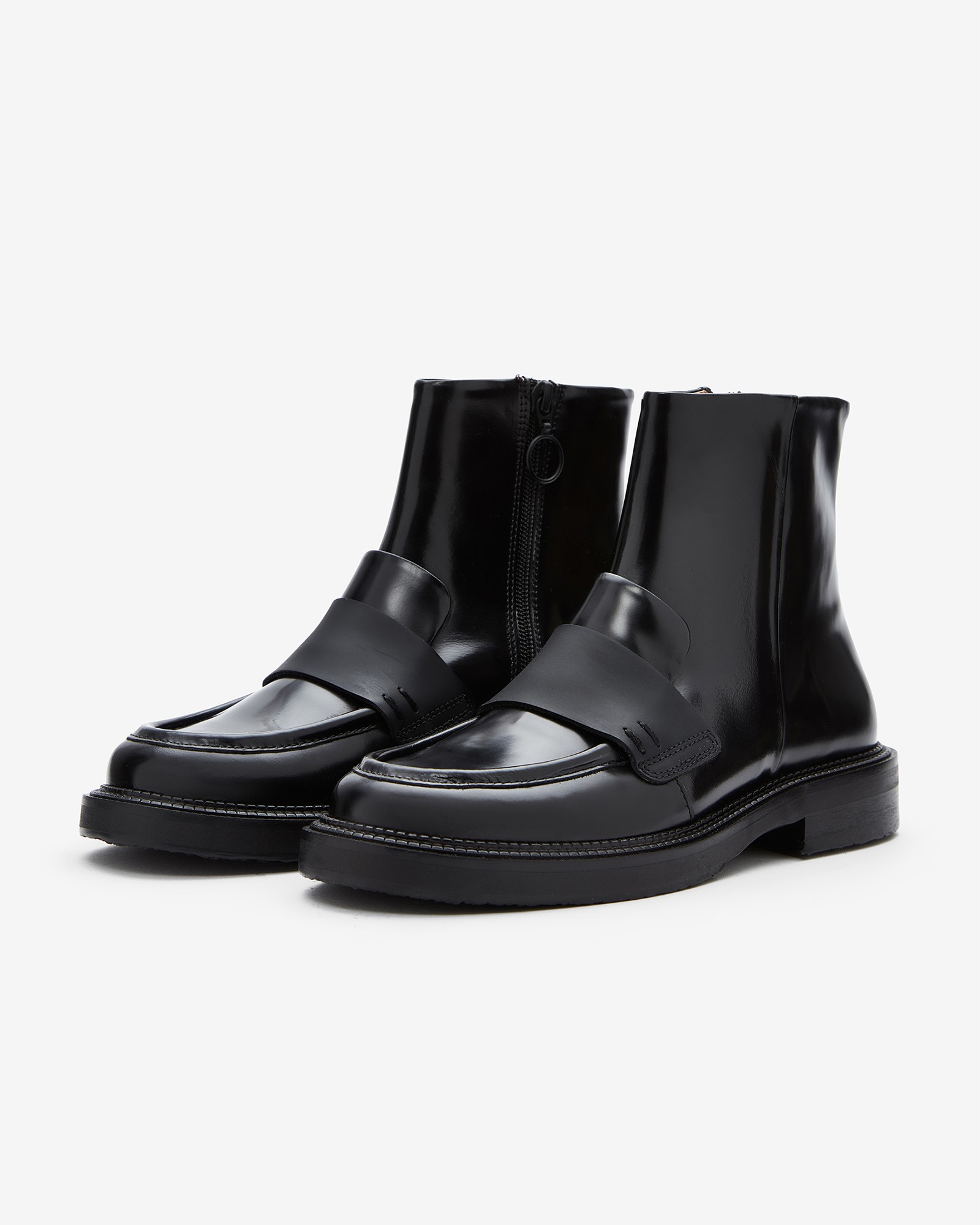 Emma Boot W is a sophisticated loafer boot with a round toe and a strong double welt that adds structure and presence. Built on a crepe outsole for reliable grip, it combines sleek, shiny Polido leather with a strap in rubber-finished Gummato leather. The perfect choice to carry the loafer look all through the winter season.