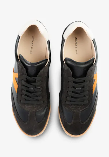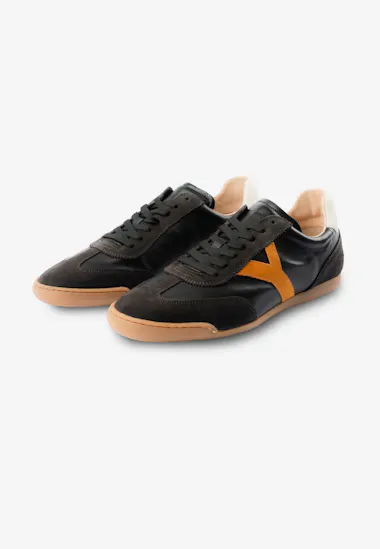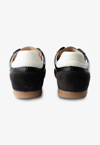 This sneaker is a very clean sporty sneaker made in leather and suede on a very slim and flat rubber out sole. We look both into our past at the same time as we throw ourselves into the future. The design gives this style a great retro look.